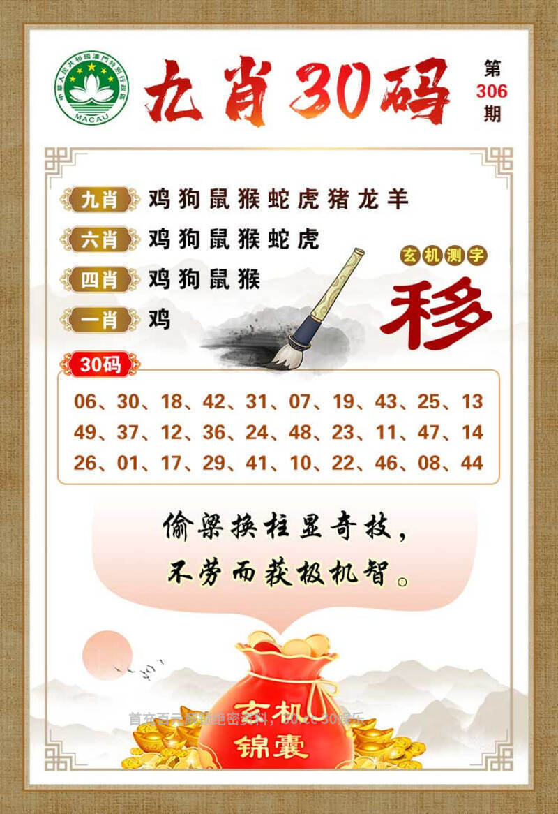 | 305期:九肖【龙狗鸡马蛇牛鼠兔猴】开:鼠42中 |